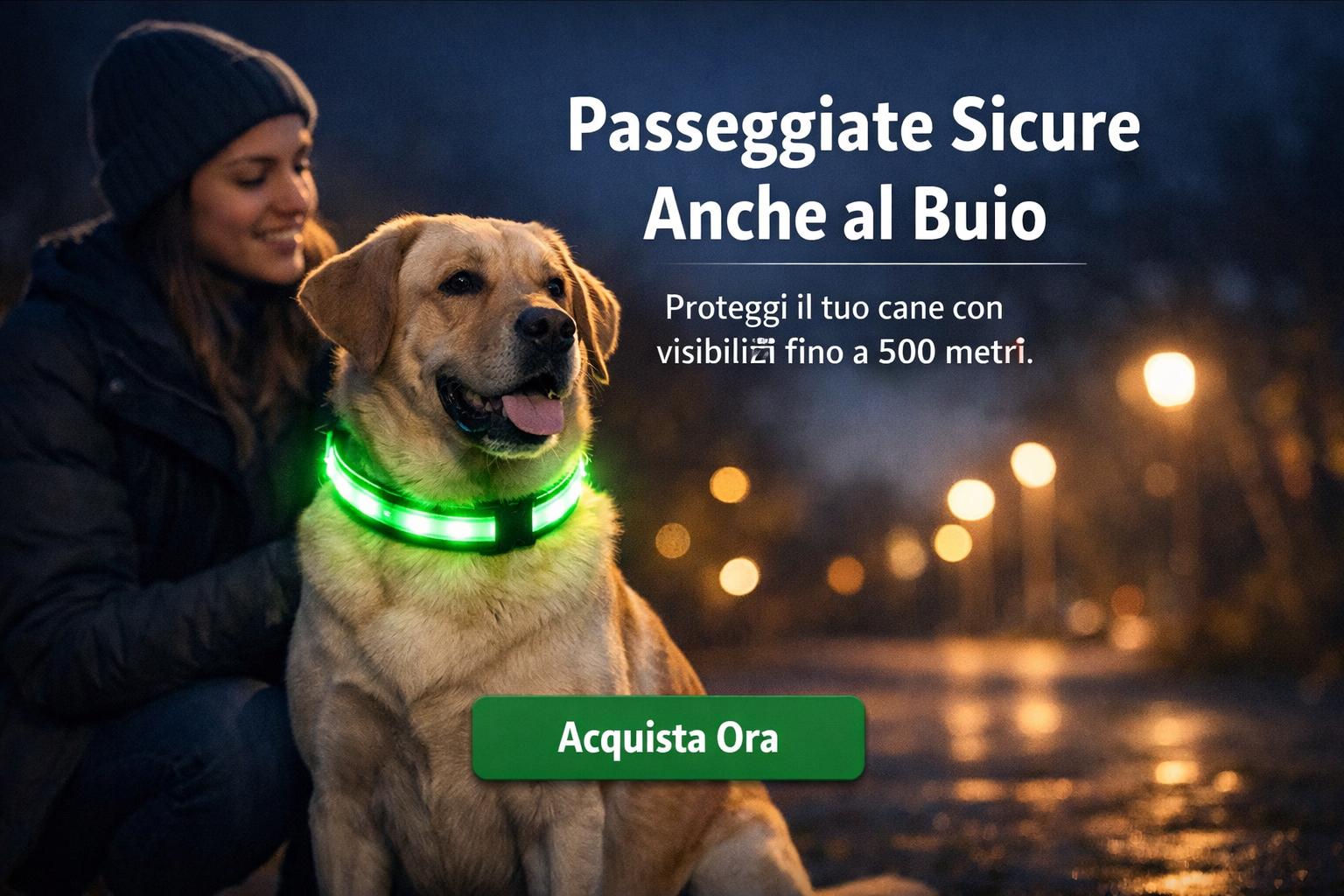 Collare LED Ricaricabile per Cane – Alta Visibilità Notturna
